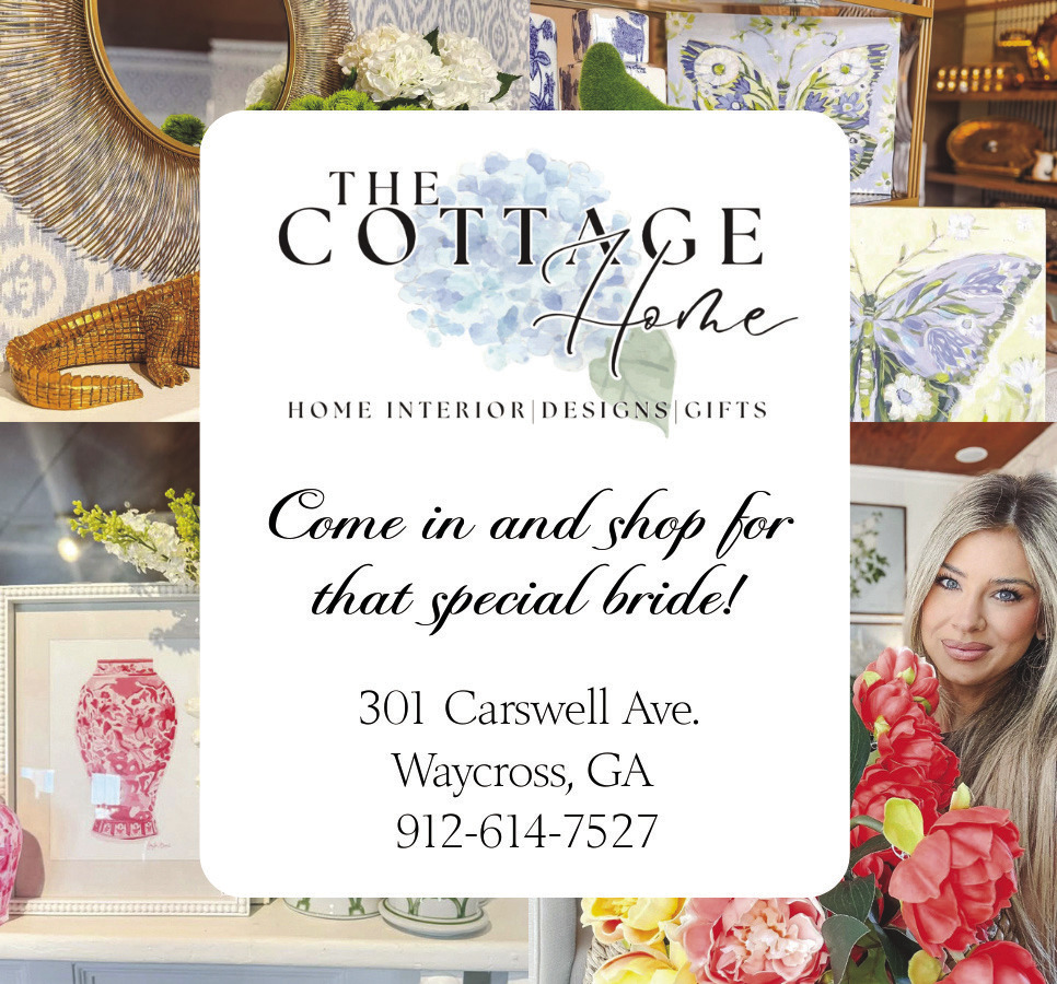 Amber King designed the bride’s makeup while Katie Burgess of Salon 1201 did her hair. The dress was an Ivory Lace and Tulle over Almond Gown by Stella York. J Green & Co. Jewelers in Waycross provided the rings.