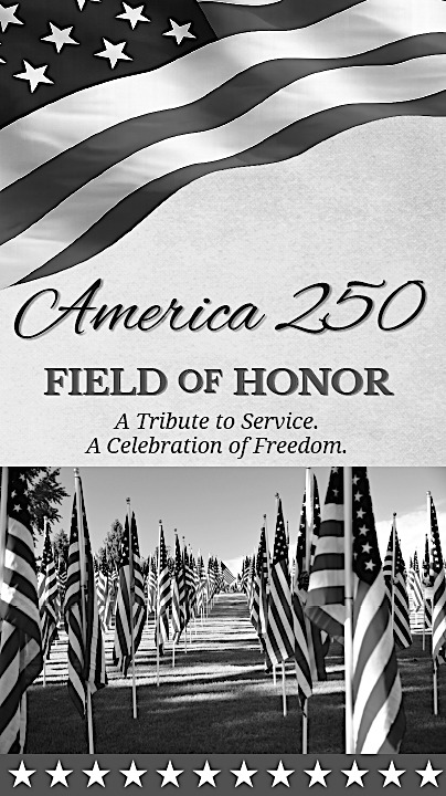 The Opening Ceremony will begin at 10 a.m., Saturday, July 4, featuring patriotic music, guest speakers, and recognition of local heroes. Organizers emphasize the “Field of Honor” is a celebration of service, not a memorial service — an uplifting tribute aligned with the national America 250 observance.