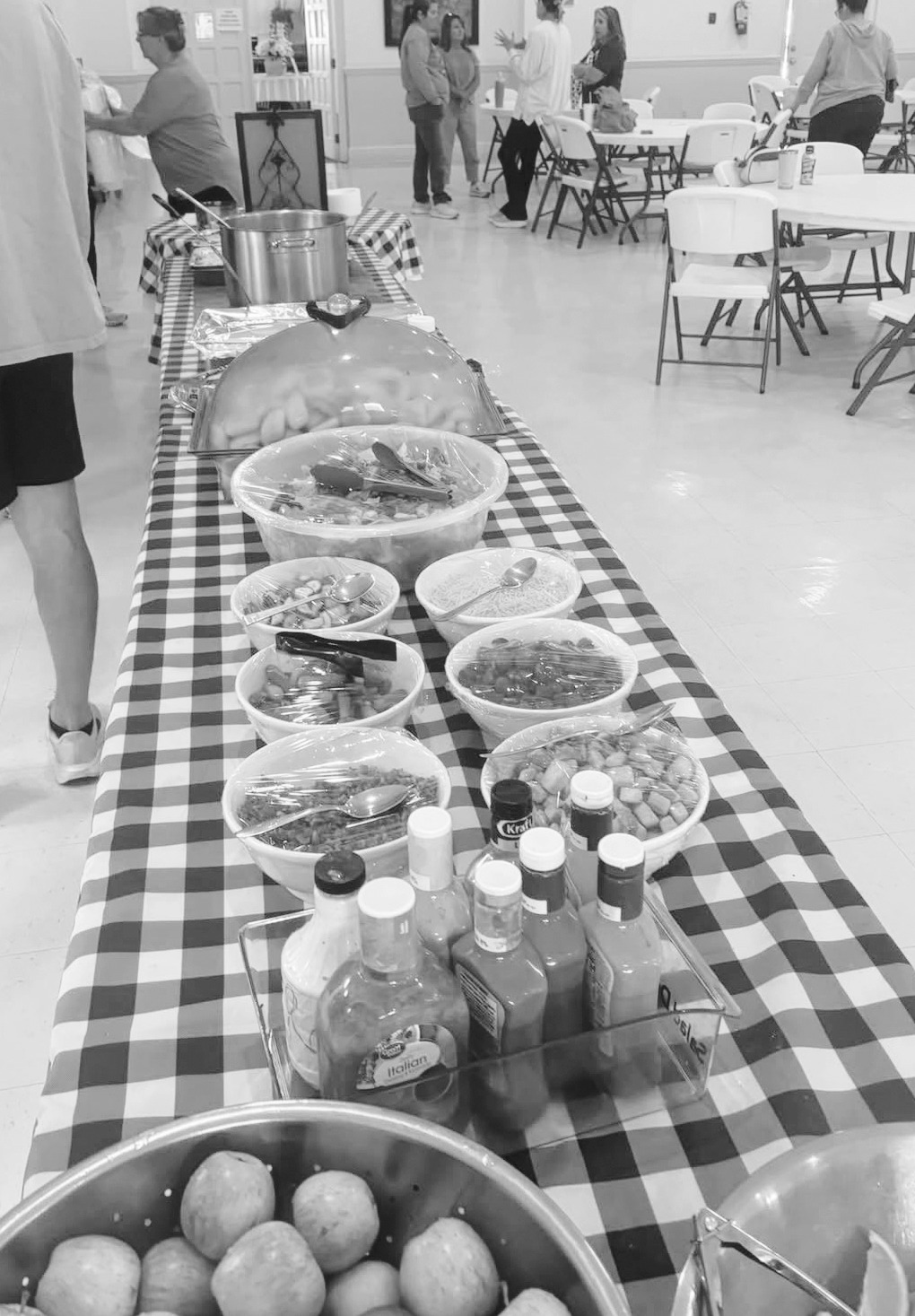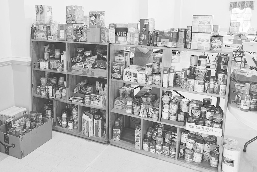 Southside Baptist youth (top photo) fold towels for those needing to shower. The church has shelves of food (bottom) for those in need. Meals (right) have been fixed for the hungry. SPECIAL PHOTOS