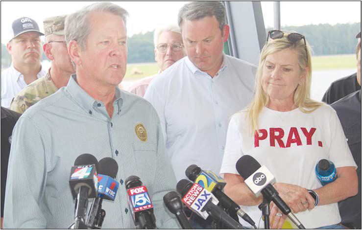 Ironically, the Brantley High School baseball team traveled to Fannin County last week for the first round of the GHSA Division I-A state tournament. The First Lady appeared at the press briefing with her husband wearing a shirt with “PRAY.” across the front. She said it was given to her during the governor’s first term by a Georgia Emergency Management Association employee in the aftermath of one of the hurricanes to hit the state. “If I can’t say anything (to the media),” she said in reference to not speaking. “I can remind people we need to continue prayers for the families and the firefighters.”