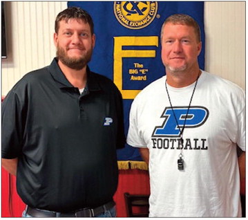 Head Coach Ryan Herring of the Pierce County Bears high school varsity football team, recently spoke to the Exchange Club of Blackshear. Program Chair Matt Gardner reported Coach Herring is now in his seventh season. His record is 72-9 overall, 27-2 in the region, with the Bears being 2020 AAA State Champs and 2023 AA State Champs. Coach Herring also has three State Weightlifting Championships, five Region Championships and he has the most wins of any coach in school history. Coach Herring says he gives God all the glory and feels very blessed to be able to coach and live in Pierce county where he feels he has a ton of support. Herring also praised his assistant coaches, saying they love the kids and coaching. He also commended his players as respectful and hard workers, the parents who show up for their children and a community who supports their team. Coach Herring said “We may not have a lot of size this year, but we have a whole lot of fight!” The coach emphasized the team mission statement which he calls the 3 G’s: “Give God Glory”. Pictured above are (lr) Program Chairman Matt Gardner and Bears Head Football Coach Ryan Herring.