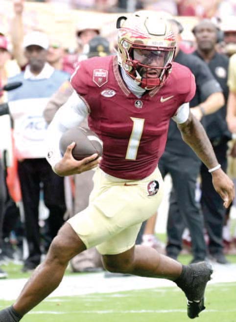 SPECIAL PHOTO FSU’s Tommy Castellanos runs in the open field gaining 78 yards against No. 8 Alabama’s defensive unit.