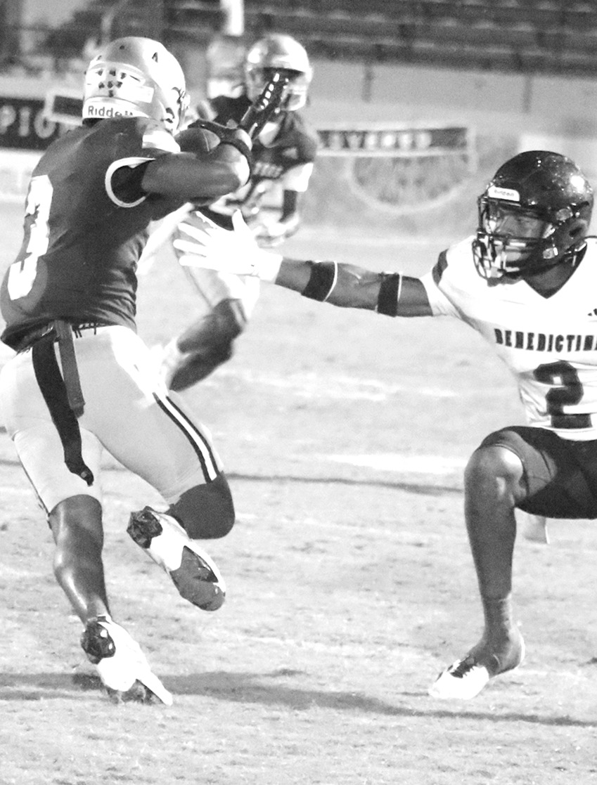 Stanley Smart’s touchdown run with 9:42 remaining Friday night provided fourth-ranked Benedictine with the last of four lead changes in a 30-27 victory over fifthranked Ware County inside Memorial Stadium.