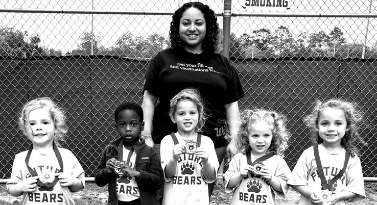 Pierce County Rec Department sports programs help nurture the next generation of players. Pictured here are some of the youngest future bears making their first forays onto the field. Both teams are composed of 3-4 year old bear cubs ready to do their county proud. Above is Coach Joseph Rivas’ Team including (l-r) Kite Myles, Daxton Barros, Berkely Rivas, Blaze Maddox-Boyette, Iris Barros, Lyla’s Campos and Lanie Reese Musselwhite with Coach Rivas in back. Pictured below is Coach Olivia Blount and Dr. Brittany Lowder’s team, including (lr) Addison Craft, Adonis Hadley, Oaklynn Rawlings, Maggie Lott and Ariah Gragg with Coach Blount in back. Not pictured is Coach Brittany Lowder.