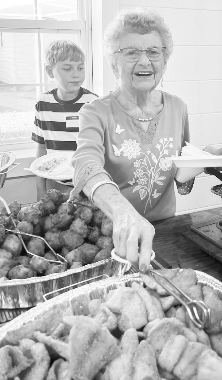 Jean Bowen of Blackshear was among the first to enjoy the food at the fundraising luncheon. Photo by NICKIE CARTER