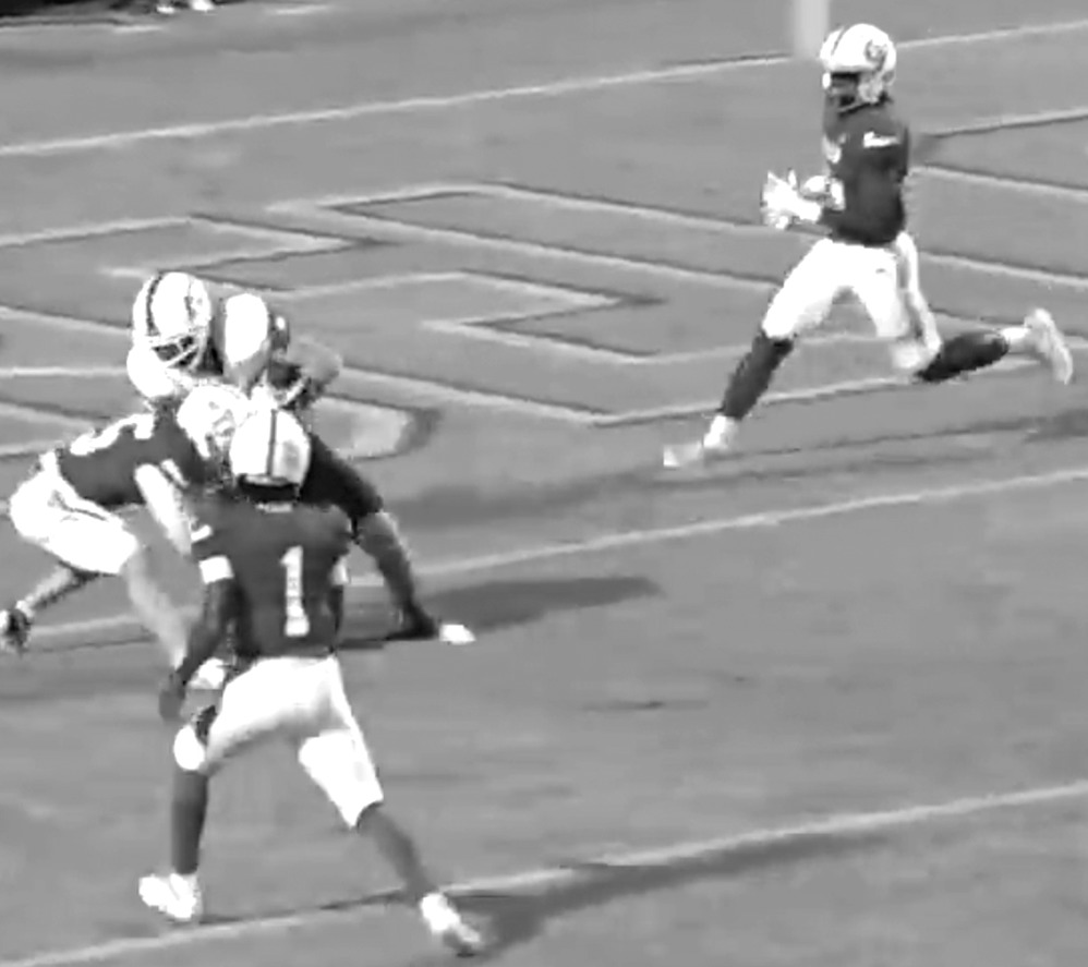 Dennis Raulerson slips the tackle attempt of a Berrien defender to score Brantley County’s first touchdown in 28 quarters. Raulerson pulled in Caden Hendrix’s pass around the Rebels’ 10 scoring on a 20-yard pass play. SPECIAL PHOTO