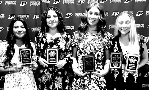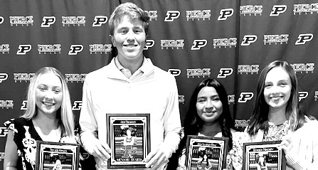 Pictured above (l-r) are Girls’ Awards winners Ana Llamas-Diaz-Most Improved, Addison Folette- Coaches Award, Selah Griffis-MVP with personal best time of 24:05.79 and Nevaeh Grant-Academic 97.33 GPA and co-MVP with a personal best time of 24:21.20.