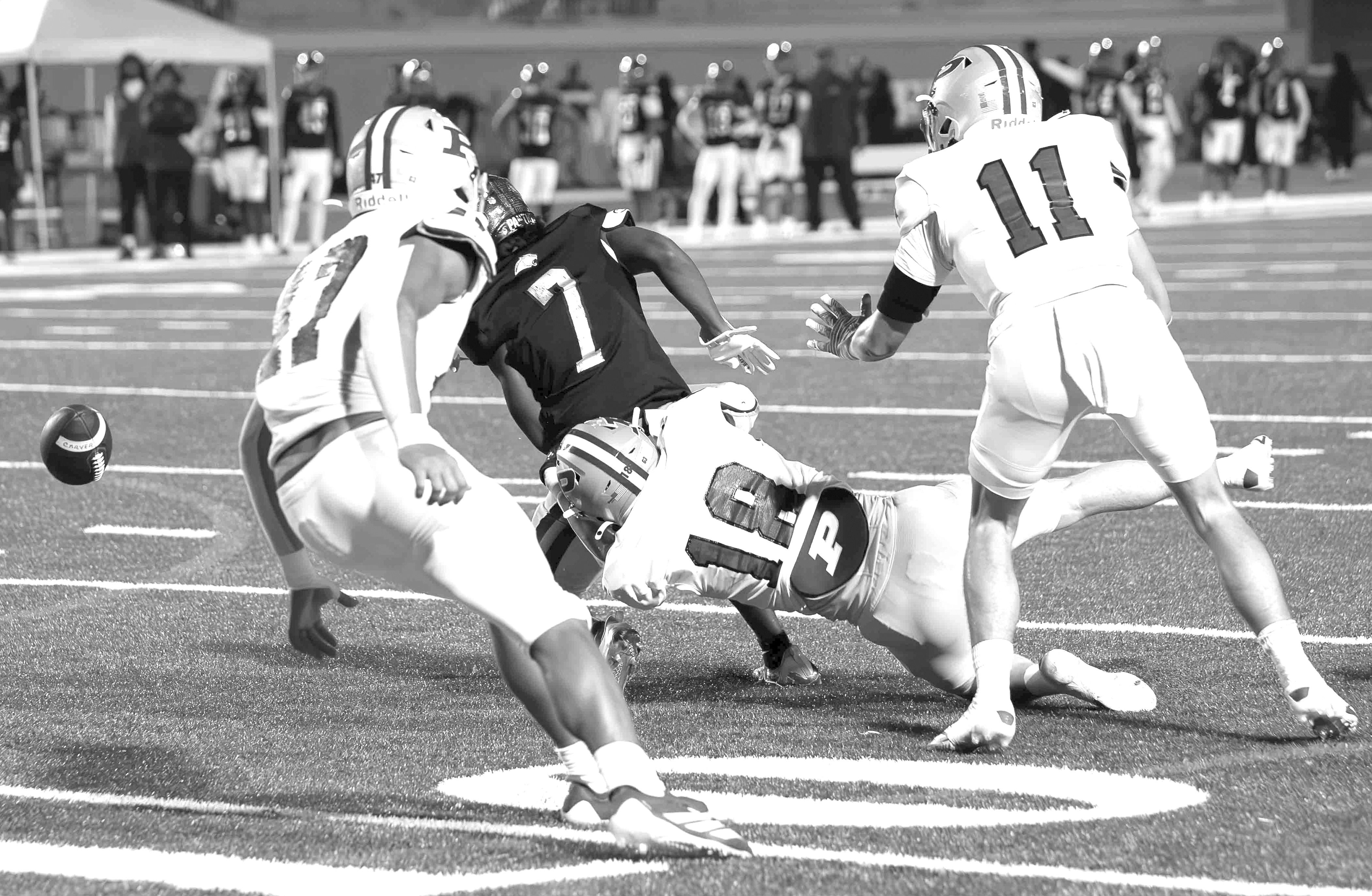 Carver-Atlanta needed just one play to answer after the kickoff. Favors, lined up at quarterback, sped 74 yards untouched with the snap, scoring 18 seconds after the Bears’ touchdown. Charles Lynch squeezed the PAT over the crossbar for a 21-7 advantage with 9:58 on the second quarter clock.