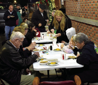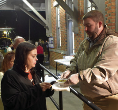 The holiday season officially began Monday night with the annual Chamber Chow, a free meal of homemade soup and cornbread sponsored by the Pierce Chamber of Commerce. Pictured above left, veterinarian Dr. Casey Kimbrell serves Tanya Coleman of Compass 360 a bowl of soup. Above right: Attendees enjoy the hearty meal.