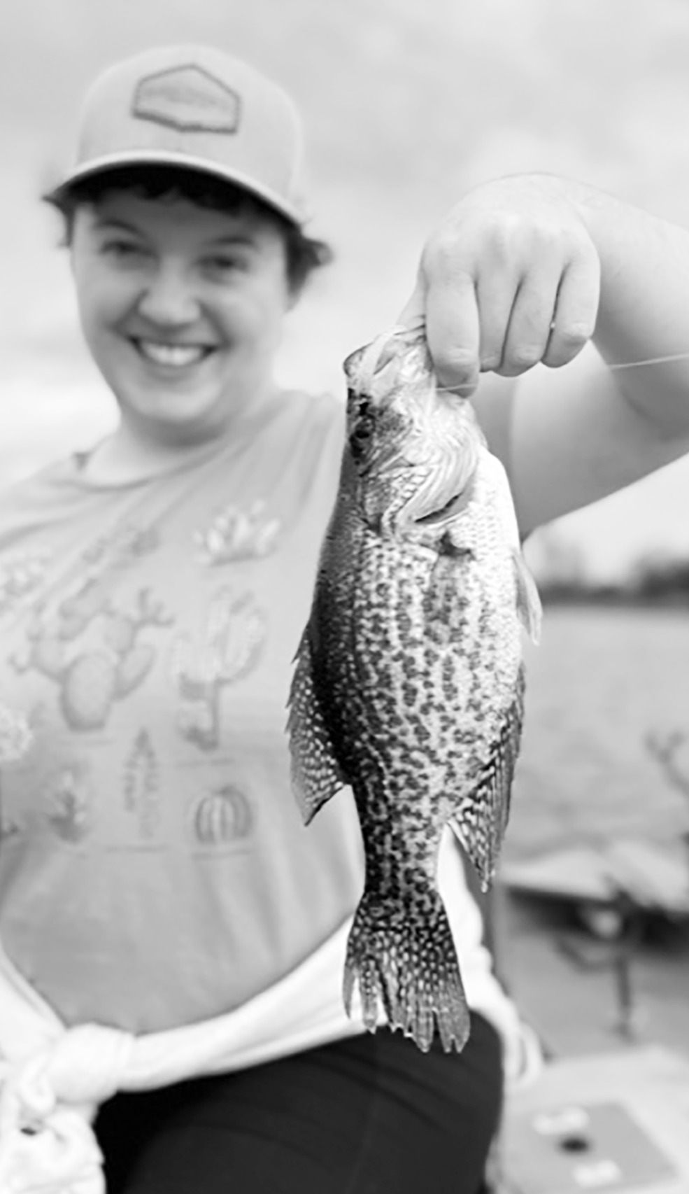 Our biggest crappie (just over a pound) ate a chartreuse back pearl version on a pearl (silver blade) Flashy Jighead. We released that one and another one right at a pound and kept a mess of the smaller crappie and the catfish.