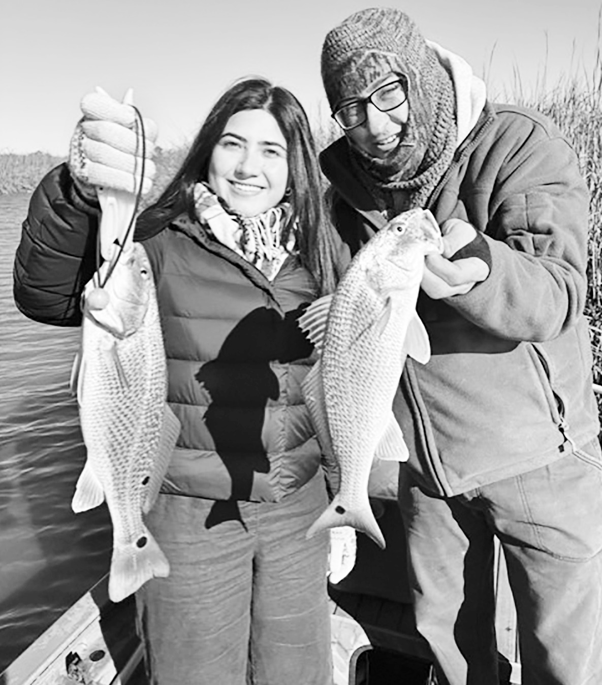 It took a couple dozen fish, but Audria (top photo) finally caught an angler award-sized bowfin by trolling a jackfish-colored Dura-Spin. Luana dos Santos and Johnny Evans (bottom photo) doubled up on redfish fishing with Capt. Duane Harris in the Brunswick area.