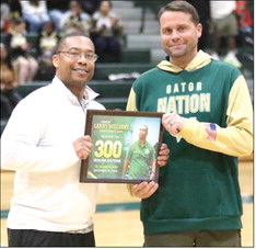 Gators’ head coach Lenny Williams was recognized during halftime of the Lady Gators-Wayne County game with recognizing his 300th career coaching victory earlier in January. Photo By RICK HEAD